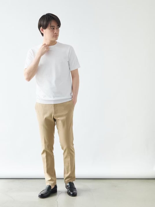 4回もの試作品作りの末に完成した、“1日にわずか10枚”しか作れないプレミアム感のある贅沢なニットTシャツです。