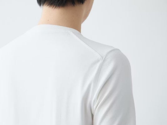 なお、特に袖口の耐久性には自信があります。着用や洗濯を繰り返すことで、袖口の伸びて(余る感じ)がこのニットTには無いので、そこも感じてもらえたらと思います。」(川島)
