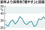 業種別でみると、「増やす」が多かったのは食品関連で、17社中11社に上った。一正蒲鉾(新潟市東区)は前年実績の1・6倍の40人、亀田製菓(同市江南区)は1・3倍の60人を計画する。栗山米菓(同市北区)は1・5倍の25人、新潟ケンベイ(同市江南区)は前年実績の1人から10〜15人と大幅増を見込む。