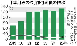 葉月みのりは2019年に本格デビューし、8月中旬に収穫できることから、その名が付けられた。19年の作付面積は71ヘクタールだったが徐々に増え、25年は過去最大の133ヘクタールで作付けされる。
