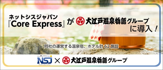 株式会社ネットシスジャパン(代表取締役:徳正 賢、本社:東京都中央区、以下弊社)が提供する訪日観光客集客支援サービス『Core Express』が大江戸温泉物語ホテルズ&リゾーツ株式会社(代表取締役:橋本 啓太、本社:東京都中央区)が運営する温泉宿やホテル、合計62施設への導入が決定したことをお知らせいたします。