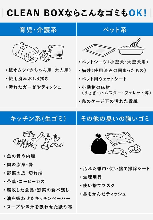 ゴミが臭うのは、常温で放置することで雑菌が増殖し、腐敗することが原因です。近年は温暖化による気温上昇で、1年を通じて生ごみの臭いが気になる期間も増加。特に乳児を育てる家庭やペットを飼育している家庭では、キッチンの生ごみだけでなく、おむつやペットシートの臭い対策が悩みとなっています。そんなお悩みを解決したい、という思いから、SANKAではマイナス11度で凍らせることで、ゴミの腐敗を根本予防し、臭いの発生を回避する“冷やすごみ箱” 「CLEAN BOX」を開発しました。