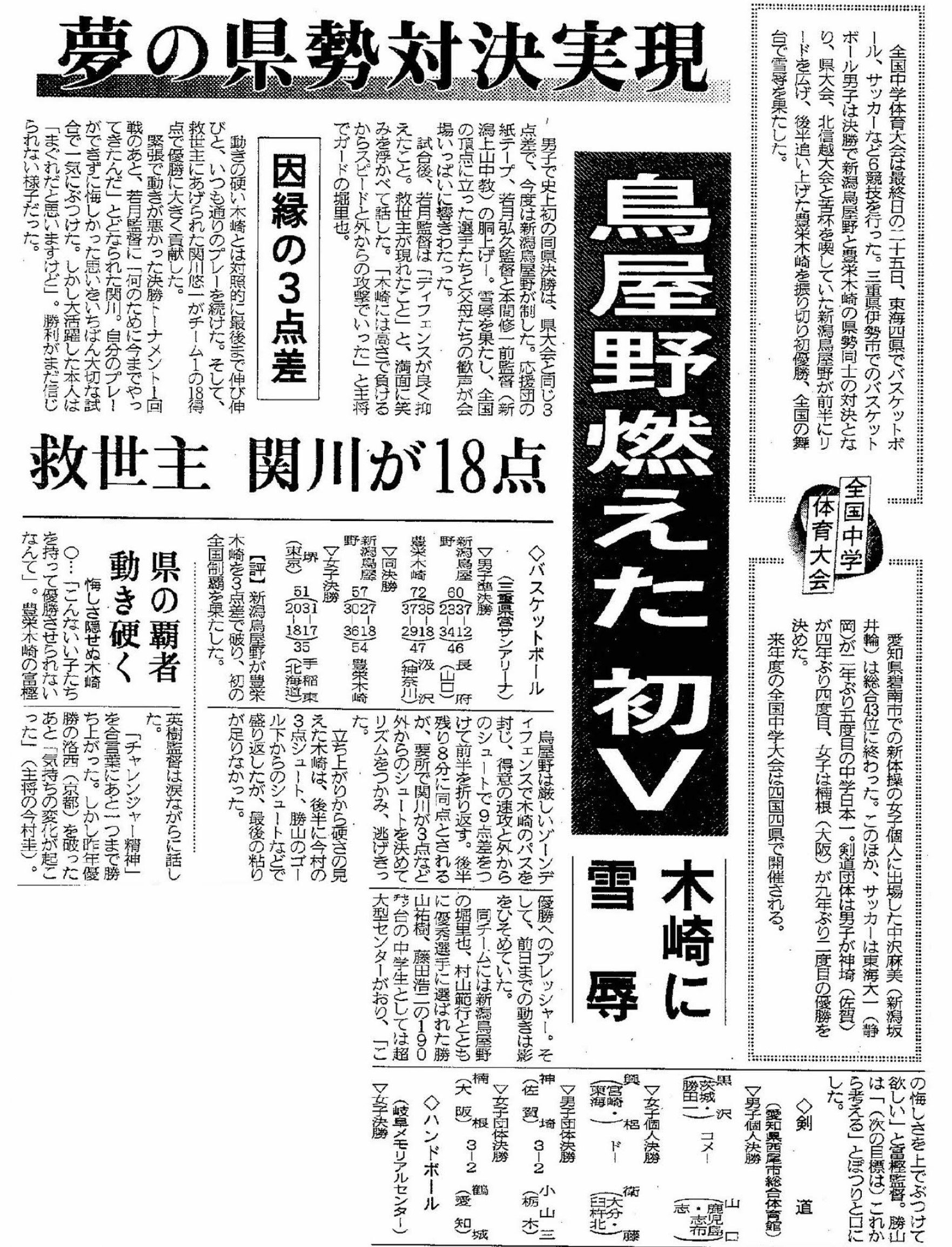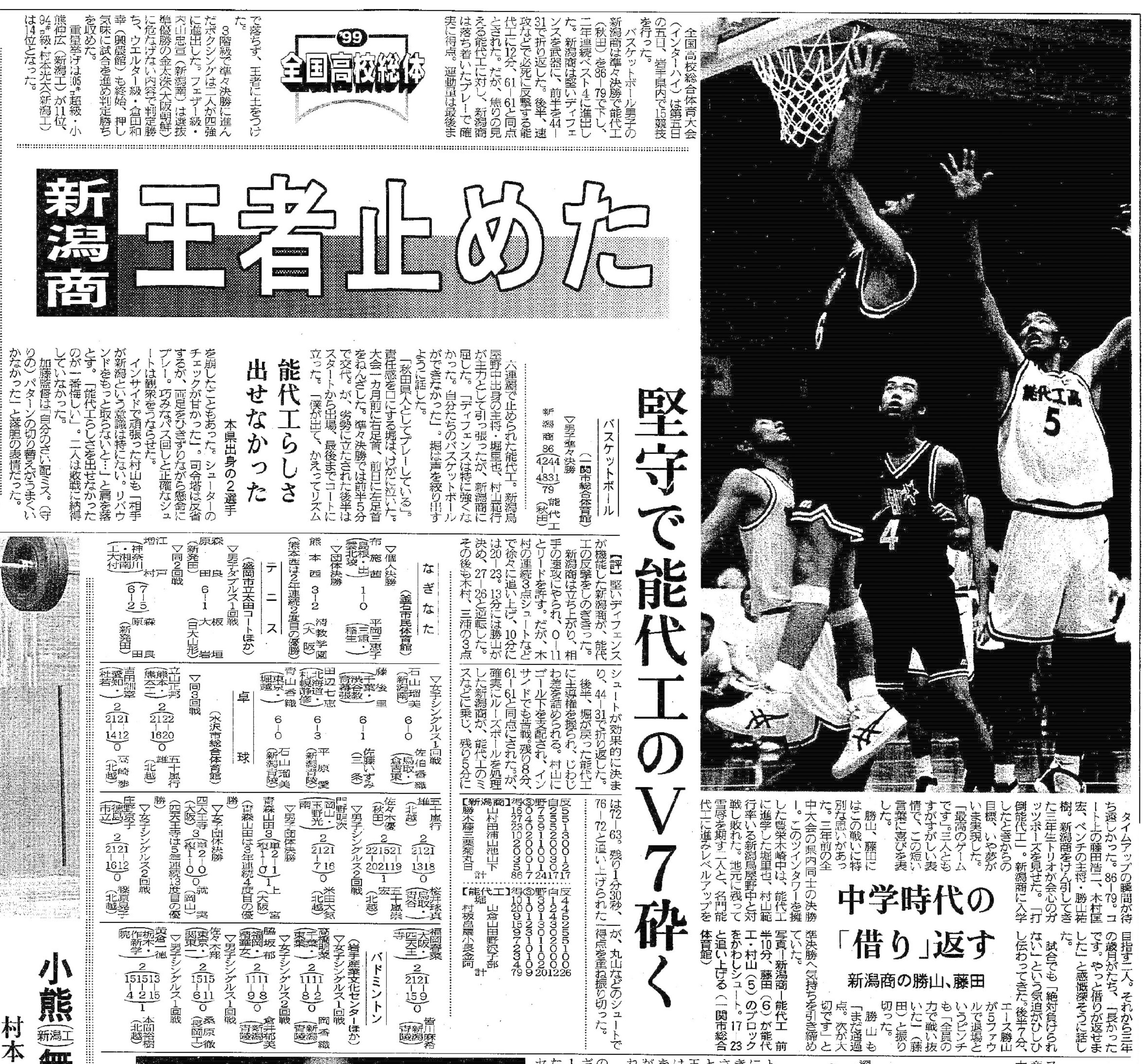 堀さんは鳥屋野中から能代工業高校(秋田県・現在の能代科学技術高校)に進学。1学年上には、後に日本人初のNBAプレイヤーとなる田臥勇太がいた。常勝軍団の一員として何度も栄冠を勝ち取った。ただ、主将を任された3年時は、新潟商にインターハイ7連覇を阻まれるなど、苦い記憶もある。