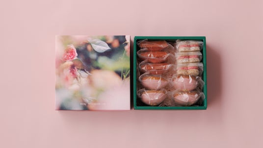 紅茶葉入りの香り高いダックワーズ生地で、ベリー風味のバタークリームをふんわりとサンド。中央には香り高い紅茶のクリームを絞り、味と食感に奥行きを持たせました。ハート型のフォルムが、母の日の贈り物にぴったりな限定スイーツです。