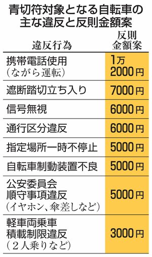 警察庁は、自転車で交通違反をした際に反則金納付を通告できる交通反則切符(青切符)制度を、来年4月1日に開始する方針を明らかにした。対象は16歳以上で、改正道交法16歳以上の自転車の交通違反に反則金納付を通告する交通反則切符(青切符)制度の導入が柱で、2024年5月に成立した。ページ下部に詳しい解説を掲載。 を同日に施行する。金額を定めた同法...