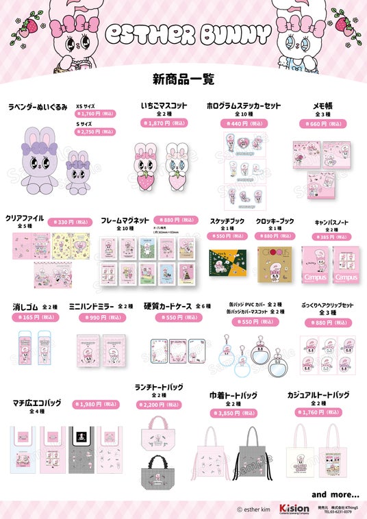 既存の人気商品だけでなく新商品も多数展開し充実したラインナップをピンクの世界観と一緒にお楽しみください。また、エスターバニーだけでなく、『サンリオキャラクターズ(キャラクター大賞)』、『mikko illustrations』、『おでかけ子ザメ』、『ケロロ軍曹』など様々なコンテンツを展開するむにゅぐるみパティオも同時出店します。