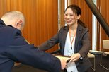 ゆきぐに信組で15日行われた広報活動は、署員3人と、ゆきぐに信用組合信の常勤監事で「特殊詐欺被害防止推進員」の上村亨さん(64)が参加。「きょうは振り込みですか」「+(プラス)から始まる電話番号は詐欺の可能性が高いです」などと呼びかけ、「医療費・保険料はATMでは戻りません!」と書かれたチラシやポケットティッシュなどを手渡した。