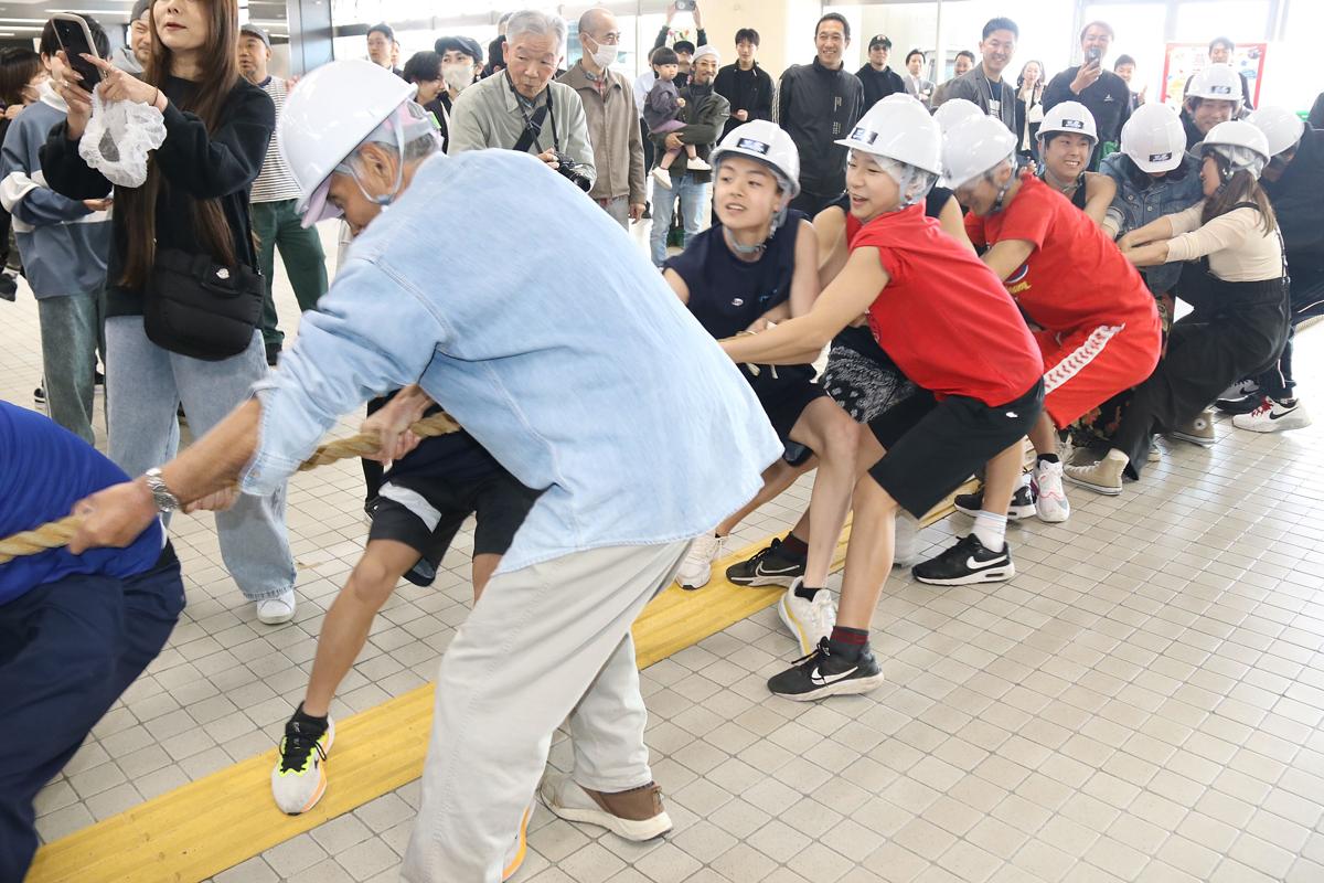 イベントは燕三条地域のものづくりに関わる企業「ドッツアンドラインズ」が主催した。長年のライバルとも言われる両市が、競い合いつつ綱のようにきずなを強めようと、昨年初めて綱引き大会を企画。三条市チームが勝利した。