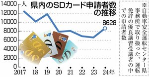 一定期間、自動車運転で無事故・無違反だった優良ドライバーが取得できる「SD(セーフドライバー)カード」が人気を集めている。発行元のまとめによると、2024年度の県内での個人申請者数は23年度に比べ30%以上増加。物価高の中、飲食店やガソリンスタンド、引っ越し会社などさまざまな場所で割引が受けられるため、節約志向の消費者から熱視線が注がれているようだ。