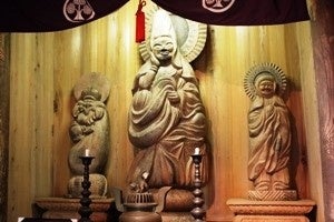 本尊の如意輪観音と行基菩薩(右)、大黒天(左)