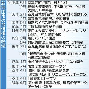 「『一つの新発田市』という一体感が出てきた」。二階堂馨市長は4月上旬の記者会見で強調した。新発田市議として合併を推進。10年に市長選で初当選し、現在4期目となる。
