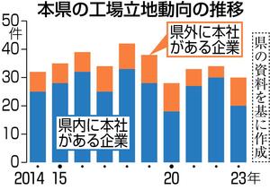 2023年に企業が工場建設を目的に、県内で0・1ヘクタール以上の用地(借地を含む)を取得した件数は前年比4件減の30件だった。「電子部品・デバイス・電子回路」の業種が18年以来、5年ぶりに立地した。県産業立地課の角幸治課長は「半導体関連産業が世界的に好調で、その波が新潟県にも影響を与えたのではないか」とみている。