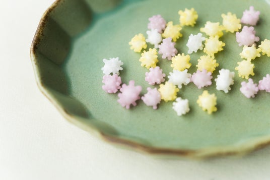 見た目は金平糖ですが、中が米を原料とするあられで、食感が軽く、甘さも控えめでカロリーも低いお菓子です。食べ方も特徴的で、そのまま食べることもできますが、飲み物にいれて浮いてくる様子がかわいらしい、見ても楽しいお菓子です。