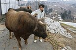 国の重要無形民俗文化財に指定されている小千谷市の「牛の角突き」の初場所が3日、同市小栗山の小千谷闘牛場で開かれた。角突きシーズンの幕開けを飾る18の取組があり、重さ約1トンの牛が激しくぶつかり合う熱戦を、県内外から訪れた観光客ら約1000人が見守った。
