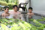 五泉市赤海の複合施設ラポルテ五泉に、市内の小学生が作ったこいのぼり飾りがお目見えした。館内には市内の村松地区伝統の「のぼり旗」も展示され、子どもたちの健やかな成長を願った飾りに、来館者は目を細めて見上げていた。