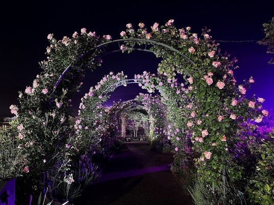 - ライトアップされたバラ園で昼間とは違う景色をお楽しみいただけます。