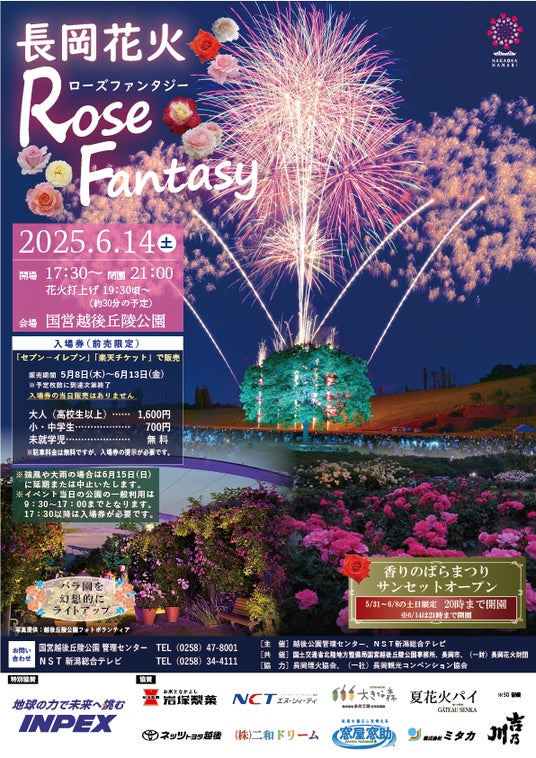 - 長岡が世界に誇る「長岡花火」と「ながおか香りのばら園」が一夜限りのコラボレーション!(今年で4回目)