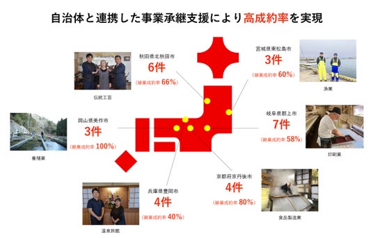 M&Aの対象となりづらい地域産業等の後継者課題を自治体等と連携して解決する事業承継版・空き家バンク=「ニホン継業バンク https://keigyo.jp/ 」を運営するココホレジャパン株式会社(代表取締役:浅井克俊、所在地:岡山県岡山市)は、「ニホン継業バンク」を通じて、これまでに46市町村で継業支援を行い、計100以上の事業者の取材・掲載を実施しました。サービス提供開始から2025年3月末までの5年間における継業の成立率は38.2% (※承継に合意したものを含む) となり、自治体とともに行う地域の事業承継支援の取り組みについて年々成果が現れています。