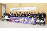 全国大会で優勝した八海シャークスのメンバーら=南魚沼市役所
