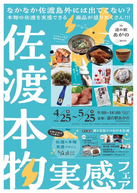 道の駅あがのでは、2025年4月 25 日から5月 25 日までの1か月間、佐渡の魅力を発信する『佐渡の本物 実感フェア』を開催しています。