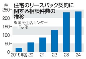 社会 自宅を売っても住み続けられる…高齢者狙う強引な勧誘にご用心!住宅の「リースバック」相談件数5年で10倍に 2025/5/25 10:00 自宅の売却と賃貸借契約を同時に結び、家賃を支払いながら同じ家に住み続ける「住宅のリースバック契約」に関する相談が2024年度に239件あり、19年度の約10倍になったとして、国民生活センターが21日... 残り448文字(全文:548文字) ここから先を読むには 続きを読む(会員登録する) 続きを読む(ログイン) 新潟日報朝刊を購読していますか? はい いいえ トップページで最新情報を見る 関連ニュース [クマ目撃情報]村上市、阿賀野市、阿賀町、加茂市、長岡市、魚... 22:00 南魚沼市の住宅ベランダにクマ侵入、屋根に上り動かず 住民は避難 21:45 県原爆被害者の会などが米大統領の核実験発言へ抗議文発表 21:30 架空の投資話で長岡市の女性から1980万円だまし取る、詐欺の... 20:30 息子装い70代女性から現金305万円詐取の疑い、加茂署など男... 19:45 [日本郵便・酒気帯び点呼不備]新潟県内10郵便局に軽バン使用... 19:30 新潟市西蒲区の70代男性、SNS型投資詐欺で10万円被害 19:00 【NST11億円所得隠し】監査役体制を一新、再発防止策に基づ... 18:45 佐渡市の姫埼灯台沖でプレジャーボート故障、釣りの20代男性救助 18:30 新潟東区の60代女性から約100万だまし取った疑い、新潟東署... 18:15 架空の業務委託で約200万円だまし取る、江南署が詐欺容疑で新... 17:30 トキ鉄「雪月花」は「傑作」!国際デザイン大会「ブルネル賞」で... 16:50