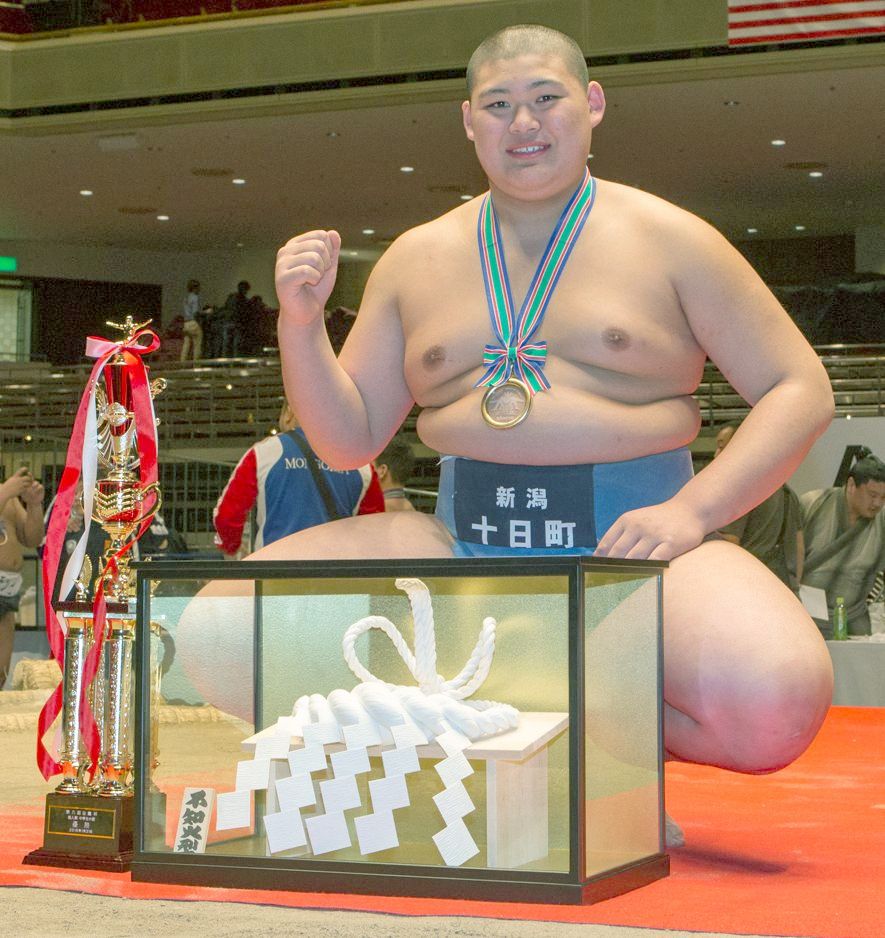 能生中時代の集大成的な戦績は、16年1月に両国国技館で開かれた「第6回白鵬杯」優勝だ。横綱白鵬(現・宮城野親方)が主催する国際親善交流少年相撲大会で、315人が競った個人中学生の部で頂点に立った。白鵬杯の優勝は新潟県勢初の快挙だった。