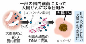 社会 くらし・文化・おでかけ 日本人の大腸がん、5割が腸内細菌に原因か 他国平均の2・6倍、若年患者で特に多く…食生活との関連は不明 2025/5/31 16:00 世界11カ国で大腸がんのゲノム(全遺伝情報)を調べたところ、日本人患者の約5割で、一部の腸内細菌が分泌する毒素が原因となる固有の変異が見つかったと、国立がん研究センターなどのチームが21日、発表した... 残り847文字(全文:947文字) この記事を読むには 会員登録が必要です 無料で会員登録して続きを読む 会員の方はこちら(ログイン) 会員のご案内 レギュラープラン【おすすめ】 すべての記事と紙面ビューアー(電子版)を無制限にお読みいただけます。 月額3,300円(税込み)。 新聞を購読されている方は無料です。 ライトプラン 無料記事と有料記事(レギュラープラン限定記事を除く)を月50本までお読みいただけます。 月額1,650円(税込み)。 無料会員 無料記事と有料記事を月2本までお読みいただけます。 無料で会員登録して続きを読む トップページで最新情報を見る 関連ニュース 「対話を大切に信頼得る」新潟地裁・三輪方大所長が就任会見 大... 14:10 [11月1日/2日/3日 3連休イベントまとめ]そばよし(柏... 14:00 新発田市唯一の市立、御免町幼稚園で11月1日閉園記念イベント... 13:50 県内高速バス維持へ課題共有、県と事業者などが新潟市で協議会 ... 13:30 【続報】佐渡市加茂歌代で火事、企業の借家を焼く 12:15 [クマ目撃情報]三条市、妙高市、糸魚川市、阿賀野市(10月30日) 12:15 ぶどうスキー場(村上市)営業再開へ運営会社が本格始動!キャン... 12:10 新潟で磨いたセンス、第一線へ飛べ!「劇場版ハイキュー!!」「... 12:00 「蝋型鋳金」「紫銅焼き」に宿る匠の技!大久保鋳物が柏崎市初の... 11:40 アニメ文化・産業の拠点化への課題は?新潟アニメ推進協議会が議... 11:20 【イラストで知る錦鯉】小千谷市で育てる世界一の錦鯉!“ワール... 11:00 おむつサブスク、長岡市の公立13保育園で11月スタート!保護... 10:30 特集・連載 [新潟県の地域別感染症情報]マイコプラズマ肺炎、インフルエン... 10/23 【高校入試・新潟】最新情報&お役立ち情報まとめ 倍率・過去問も 7/28 漫画で知る「うつ病」とは? 若手社員が休職→通院→復職するま... 6/13 [紅葉スポット×花スポット]新潟県内の紅葉や花畑、映える名所... 5/29 【猫動画・新作あり】新潟県内「猫のいる店」♡モフモフに触れる... 10/29 [WEリーグ]今からでも間に合う!アルビレックス新潟レディー... 8/14 【機動戦士ガンダムジークアクス】鶴巻和哉監督(五泉市出身)が... 8/4 [プロ野球ドラフト会議]プロ志望届、新潟県関係は7人が提出!... 10/9 Otona+ 今や「1兆円市場」冷凍食品はなぜ愛されるのか?県民に人気の商... 10/28 【動画あり】新潟の夜空染めたオーロラ、実は江戸時代にも目撃さ... 10/21 卵子提供で2児出産、自助グループ立ち上げ当事者に寄り添い…芸... 10/14 山頂に神社、小学校の屋上…各地に点在する「三角点」って?形は... 9/30 「アクシアル」「コメリ」などプライベートブランド開発の裏側お... 9/23