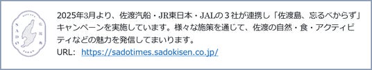 佐渡汽船株式会社(所在地:新潟県佐渡市、代表取締役:尾渡英生、以下「佐渡汽船」)は、佐渡島を拠点に世界的に活躍する太鼓芸能集団「鼓童」と連携し、「鼓童日帰りプラン 心に響く佐渡の音」を企画・販売いたしました。