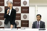 新潟薬科大で12日に締結式があり、三条東高の小堺さとみ校長と新潟薬科大の杉原多公通(たくみち)学長が協定書に署名した。