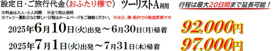 ・新日本海フェリー往復乗用車航送代(1台5m未満まで)
