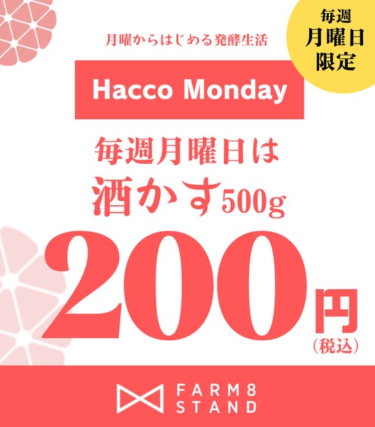 株式会社FARM8(本社:新潟県長岡市、代表取締役:樺沢敦)が運営する発酵ドリンク専門店「FARM8 STAND」(御茶ノ水・エキュートエディション御茶ノ水2階)では、2025年5月26日(月)より、毎週月曜日限定で新潟の発酵文化をお得に楽しむ企画『Hacco Monday(発酵マンデー)』をスタートします。