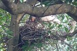 モニタリングチームが23日午後2時ごろ、真野地区の林で2羽のひなが、巣と近くの枝を行き来しているのを確認した。このペアは、4月17日に今季最も早くふ化が確認されていた。