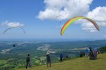 レースでは、標高650メートルの離陸地点に集まった選手が風を見極め次々に飛び立ち、上空から一斉にスタート。当初設定された約20キロのコースは強風のため途中でレースを終えたが、色とりどりのパラグライダーが晴れ間がのぞ...