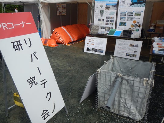 一般社団法人リバーテクノ研究会は、民間21社が学識経験者と連携して、河川の環境や防災・減災に関する多様な社会的ニーズに機動的かつ柔軟に適用可能な技術の開発・普及・啓発を目的に、2009年に非営利型一般社団法人としてスタートしました。本研究会が開発の核と位置付けている可搬式堤防や河川堤防の調査点検のためのリバーテクノコーン、堤防の質的強化のためのリリーフウエル工法、ドレ―ン工法、水防シートの開発などを行っています。また、研究会では「スーパー川守」制度を設け、地域の行政機関や各種団体と連携して、河川施設の管理や減災対策の提案などの活動も積極的に展開しています。