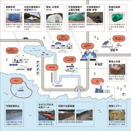 大型膜面構造物(テント構造物)や土木・物流資材などを手がける太陽工業株式会社(東京本社:東京都世田谷区、大阪本社:大阪市淀川区、社長:能村 祐己)は、水防月間(5月1日~31日・北海道は6月)に合わせて全国9地域で行われる総合水防演習へ一般社団法人リバーテクノ研究会(東京都世田谷区、会長:関 克己)からの要請を受けて参加しています。三角水のう「デルタチューブ」やハイブリッドエアーテント「マク・クイックシェルター」などの防災機器を提供し、各地の水防体制強化に向けた演習を支援しています。