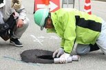 佐渡市の市道で路面の陥没見つかる、付近を全面通行止め