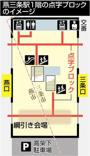 JR燕三条駅で4月下旬に行われた三条市、燕市の各市チームによる綱引き大会を巡って、競技が点字ブロック上で行われたため、視覚障害者の駅の利用に支障があったとの声が主催者などに寄せられていたことが分かった。主催者は「来年以降の開催に当たっては配慮したい」としている。