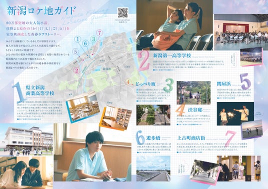 今回、映画の公開を記念して、撮影スポットを紹介する『新潟ロケ地ガイド』が完成しました。 県立新潟商業高校や新潟第一高校をはじめ、地元の人々に親しまれる商店街や遊歩道、さらには新潟まつりの提灯が映り込むシーンなど、新潟らしい景色がふんだんに登場します。