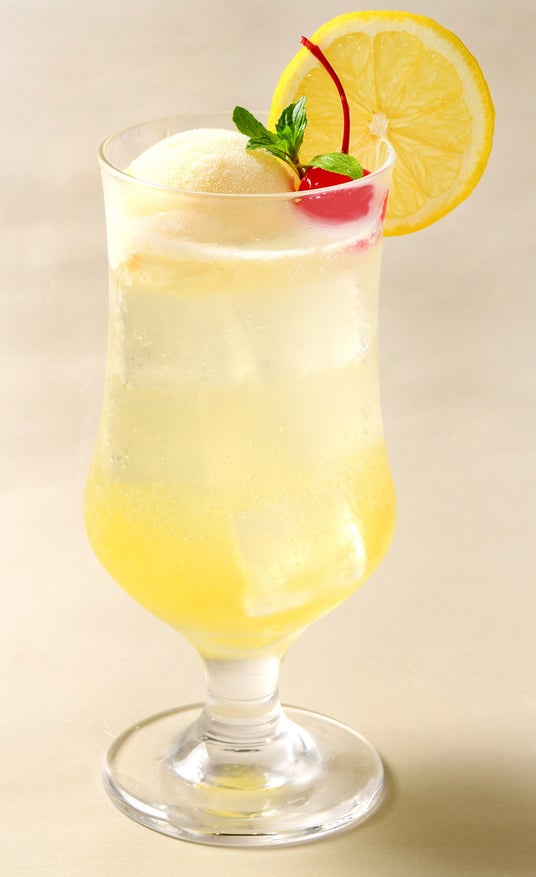 爽やかな瀬戸内レモンシロップとぷるぷる食感の瀬戸内レモンジュレが入ったソーダに、優しい甘さのバニラアイスと太陽に見立てたレモンスライスをトッピング。初夏にぴったりの甘酸っぱいクリームソーダです。