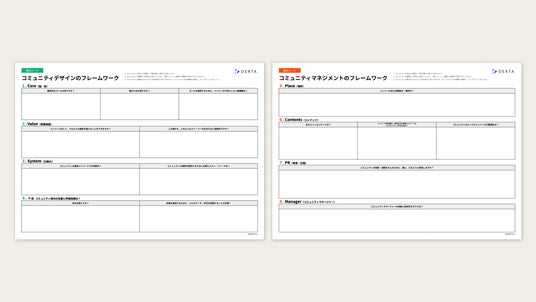 「コミュニティフレームワーク」は、共創の場や、コミュニティの立ち上げ・運営に関わる人が、その存在意義やメンバーへの提供価値、それを踏まえたコンテンツや関係性のあり方を言語化し、共有するための設計ツールです。