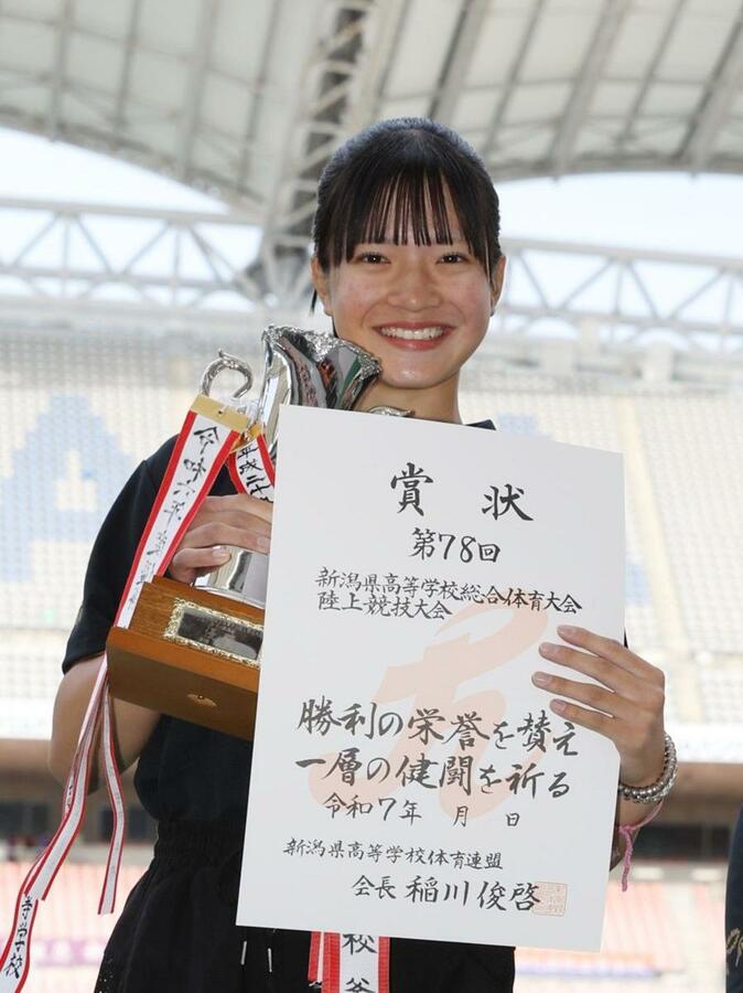 第78回県高校総合体育大会は29日、各地で競技を行った。陸上の女子棒高跳びは、関綾音(開志国際)が3メートル60の県高校新記録で頂点に立った。同砲丸投げは川浦もえ(同)が12メートル91で連覇。男子走り幅跳びは小澤昊生(新潟産大付)、同ハンマー投げは中川冬夢(新津工)が制した。