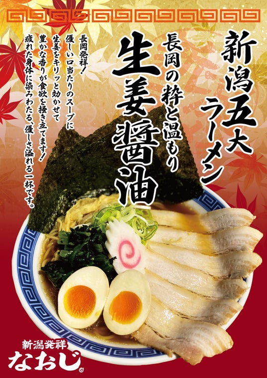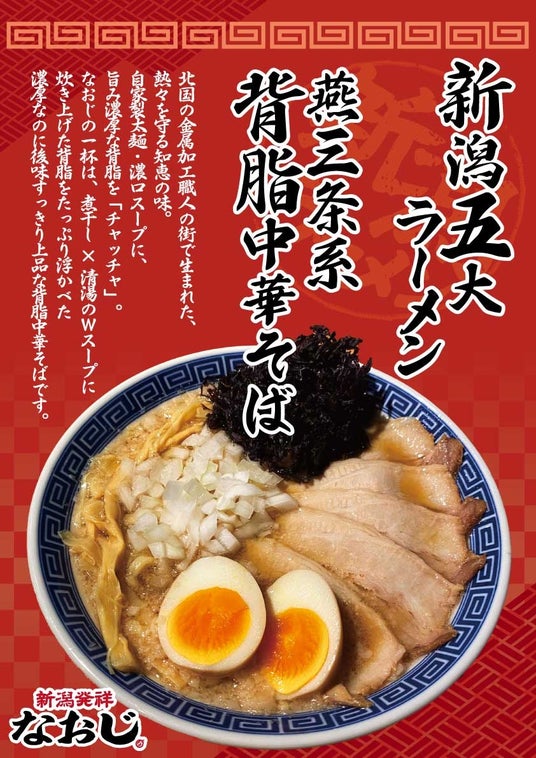 「なおじ」は、新潟ラーメンを代表する“背脂中華”をはじめ、“生姜醤油ラーメン”、“濃厚味噌ラーメン”など新潟の食文化に根ざした味づくりを追求し続けてきたブランドです。