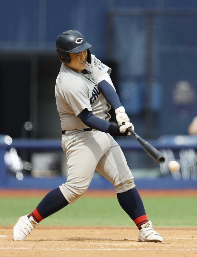 長野商業-関根学園 本塁打を放った関根学園の相馬隼人=エコスタ