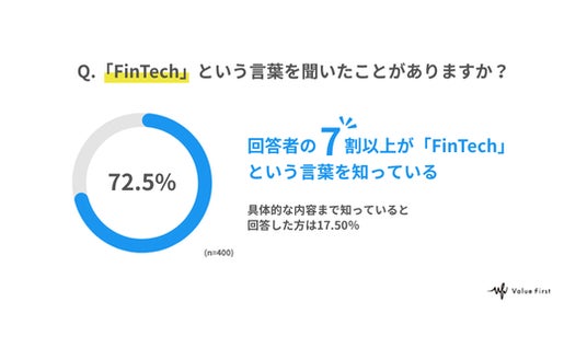 回答者の72.5%が「FinTech」という言葉を聞いたことがあると回答。