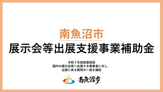南魚沼市内に本社又は本店を有する中小企業、小規模企業者又は個人事業者が自社製品の販路開拓及び情報発信を図るために、国内で開催される展示会等への出展に要する経費について予算の範囲内で補助を行います。