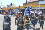 一行は、花火を合図に村松保健センターを出発。笛太鼓に導かれ、陣羽織を羽織った殿様や槍隊、家老に加え、天狗(てんぐ)、巫女(みこ)、船みこしなどが付き従った。2時間半余りかけて日枝神社までを往復した。