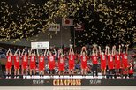 台湾に大勝しタッチを交わす日本の選手たち=豊田合成記念体育館