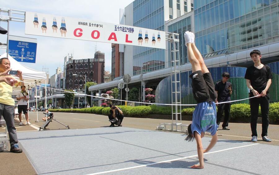 [昨年の様子]おっとっと!山本五十六の逸話にちなんで逆立ち競争!新潟長岡市・大手通りで熱戦展開