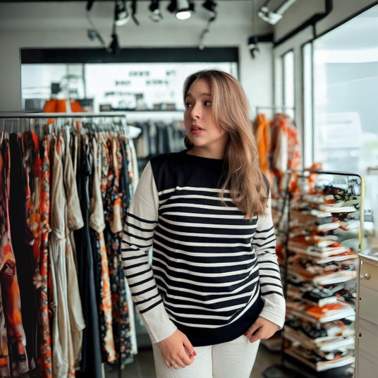 ブラックとホワイトのコンビボーダーが洗練されたスタイルを演出する一着となっています。