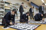 今回は日本画、洋画、版画、彫刻、工芸、書道、写真の全7部門の入賞・入選作1074点のうち、上越地域から58点が選ばれた。会場では、県展委員と無鑑査の作品を含む計369点を展示。高田城址(じょうし)公園の風景や藍染めを題材にした多彩な作品が並んだ。